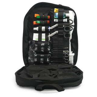 - Proper contents: bandages, antiseptics, gloves, cold packs—coupled with the presence of tourniquet and trauma dressings for higher risk routes.