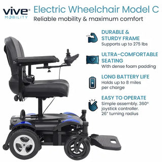 Vive Health MOB1094BLU Power Wheelchair Model C for Mobility (Blue)