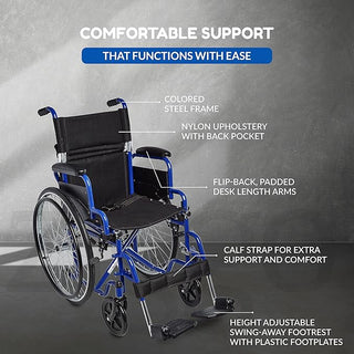 Vive Health MOB1062BLKBLU Air Frame Wheelchair Lightweight 300lb Capacity Black-Blue