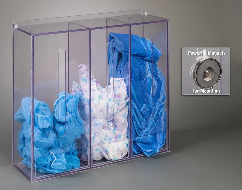 Poltex DISP3 Super Durable PETG 3-Pocket Multi-Dispenser with Lid – Versatile PPE Storage & Dispensing, Wall or Magnet Mount