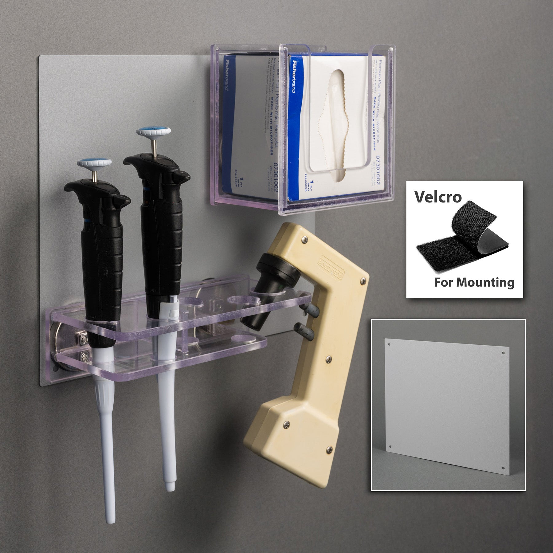 Powder coated steel mounting plate for Poltex AMOS (Adaptive Magnetic Organization System). Mount plate to inside of BSC, tissue culture hood, wall, or any other area lacking a surface that will accept Magnets. Then, choose any of the Poltex Magnet mounted products to attach to the AMOS plate. 10x12 inch plate size. Choose from wall mount (screws/anchors), High Bond Tape mount, or industrial strength Velcro.