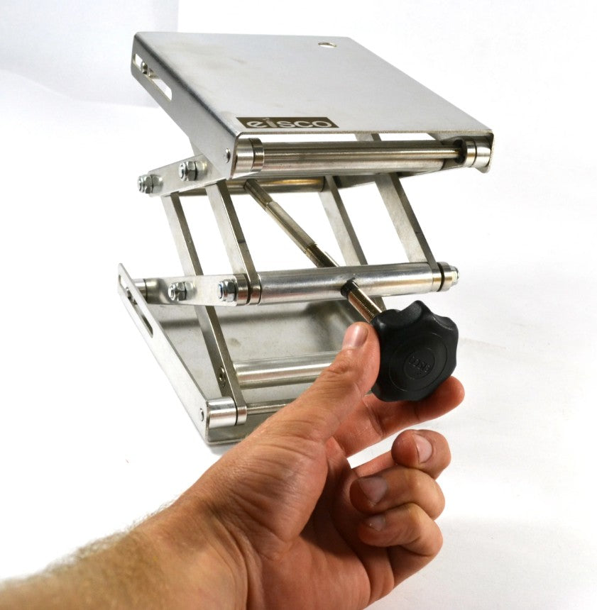 Eisco Labs SSJCT20 Stainless Steel Lab Jack - 6.5" x 5" Surface - 11" max height, Dynamic Load - 7kg