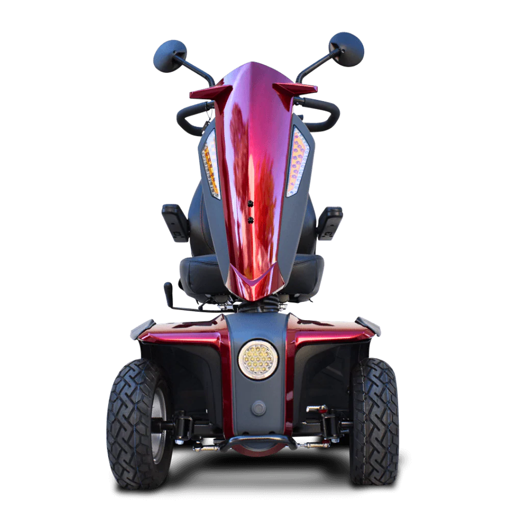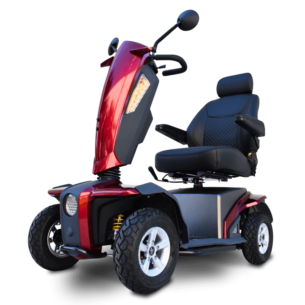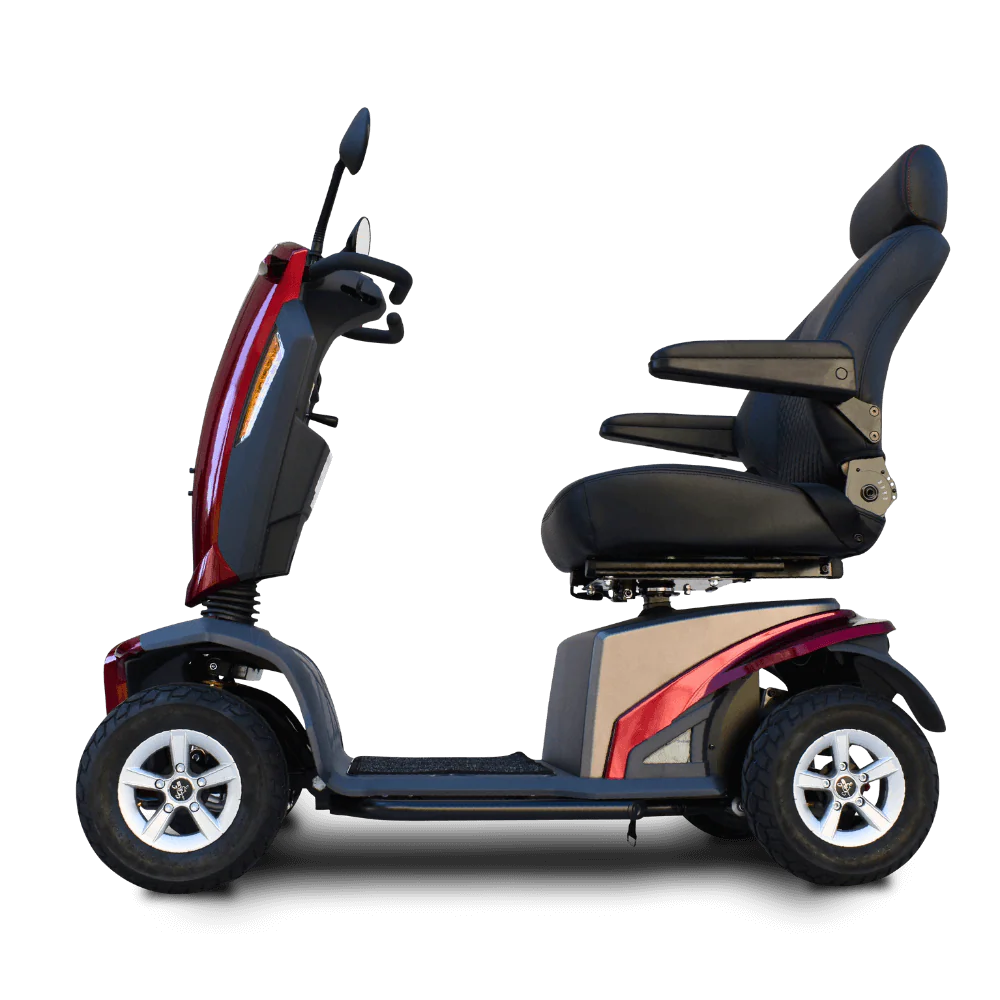 EV Rider S12E VitaXpress All-Terrain 4-Wheel Scooter, 350lb Capacity, 28 Mile Range with Full Suspension in Red/Blue