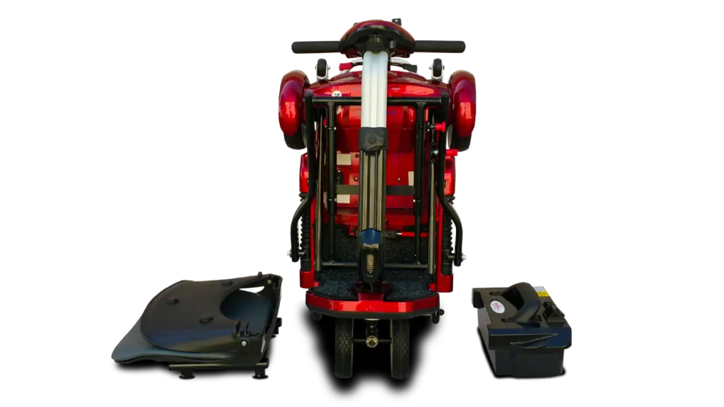 The TranSport Plus Foldable scooter is super portable and a great space saver! It’s sleek, stylish, and extremely easy to operate. It features a weight capacity of 250 lbs and a top speed of 4 mph. The scooter’s total weight is 46 lbs when removing the seat and batteries. Ready for transport and easily folded, the Transport Plus is perfect for the active traveler. Disassembly is a snap; this foldable scooter was designed for your active lifestyle. Sealed lead batteries make this travel scooter airline safe. Available in Plum, blue, copper, and burgundy.