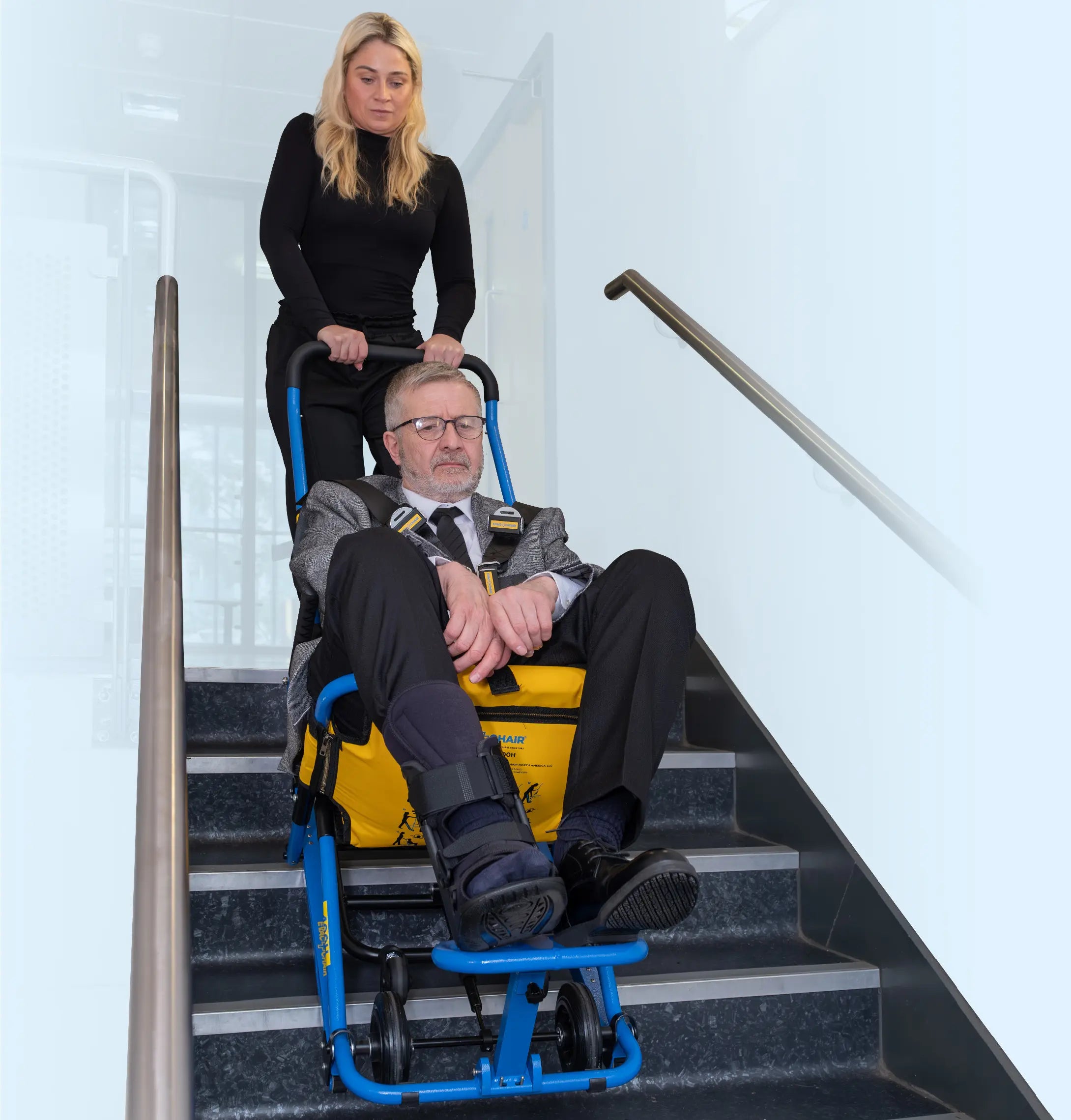- Applications: Emergency evacuation of mobility-impaired individuals from multi-story buildings, hospitals, nursing homes, offices, schools, hotels, and public facilities. Volume discounts available – call or email for orders of 10+ units. Training and certification programs recommended for staff.