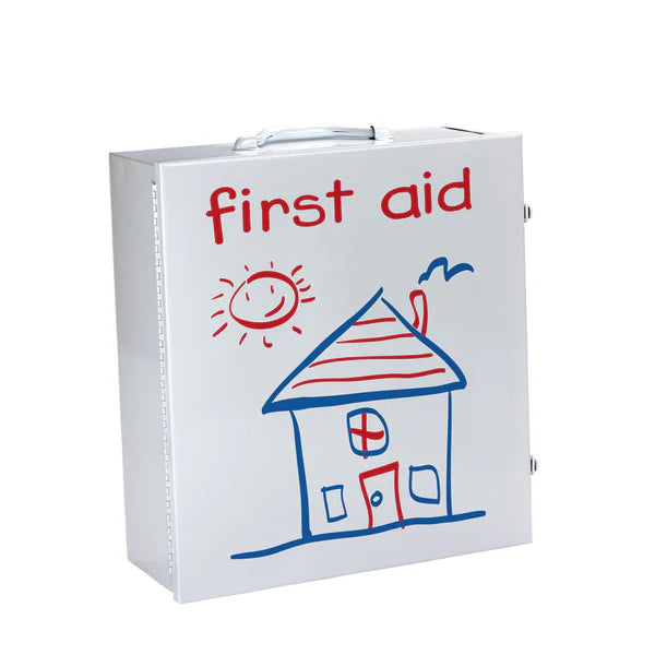 The Pediatric 3 Shelf Station is the ideal solution for schools, day care centers and summer camps. Baked enamel finish for acid and rust resistance. Serves over 50 children. This 3-shelf metal first aid cabinet is designed for pediatric use, with essential supplies for minor injuries, cuts, and burns. The durable steel construction ensures longevity, while the organized shelves allow quick access. Wall-mountable or portable with a handle, it's perfect for child-focused environments.