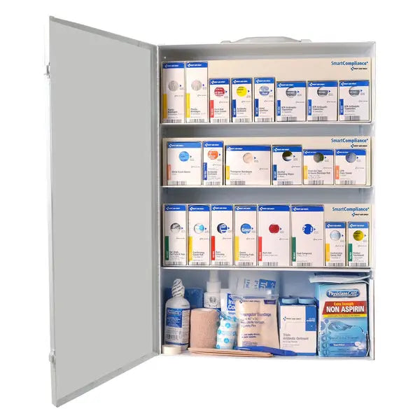 Make the smart move away from overstuffed First Aid Cabinets with our organized and easy to manage grid inserts. These grid inserts with individual refill boxes are easy to install into existing cabinets that are 15" wide, helping to eliminate cluttering. SmartTab re-order reminders make it easier to stay ANSI 2021 B compliant. Free SafetyHub phone App makes supply requisitions easy and allows you to control your costs. This product consists of 3 fully-stocked grids and extra supplies to make a cabinet ANSI 2021 B compliant, reducing First Aid costs by up to 50% over traditional van services. Convert an existing First Aid cabinet to the benefits of SmartCompliance. Use the existing cabinet so no need to remove from the wall. Easier to stay ANSI B compliant with SmartTab re-order reminders. 229 pieces sufficient to treat 50 or more people.
