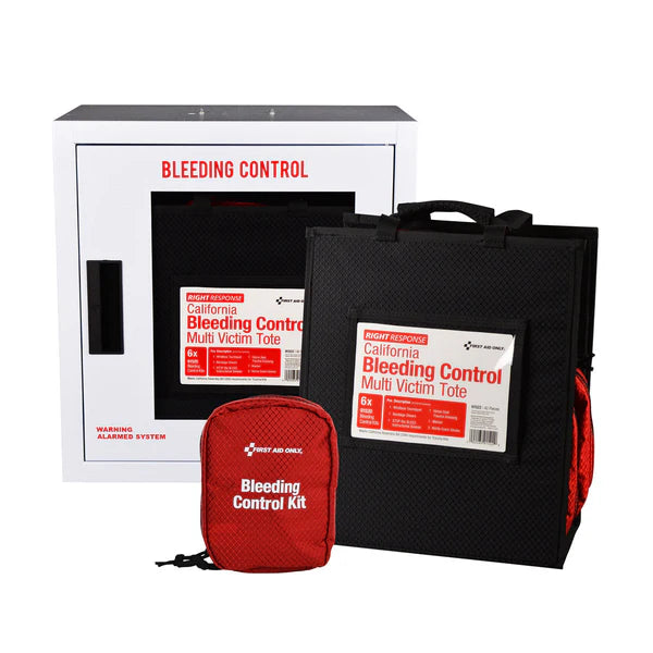 First Aid Only 91522 Metal Bleeding Control Cabinet for California AB2260 Regulation, Multiple Victim Tote with 6 Fabric Kits and Alarm for Emergency Alert