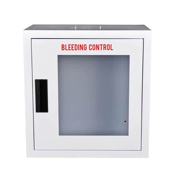 Use this large empty cabinet to customize your bleeding control solution. The cabinet is wall mountable and can fit the large bleeding control tote bag, or 4 fabric pouch bleeding control kits. Wall mountable cabinet to provide bleeding control solution. Large cabinet fits 91539 tote bag. Does not contain alarm for discrete usage. Perfect for supplementing an existing first aid kit.