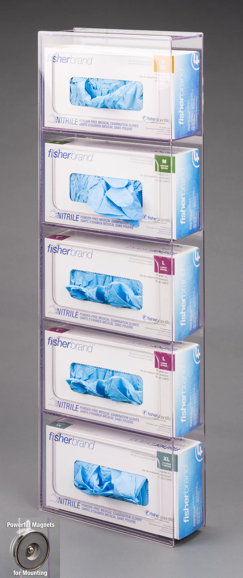 Positioned vertically or horizontally, change Without glove boxes with ease.