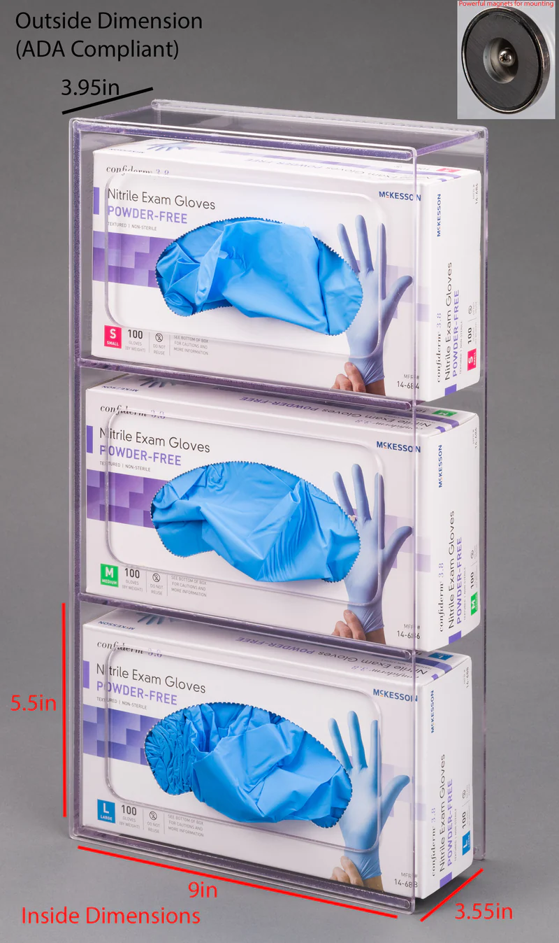 Break-resistant PETG Glove Box Holder ST (wall mount). Choose from 1 to 5 boxes of gloves (capacity).