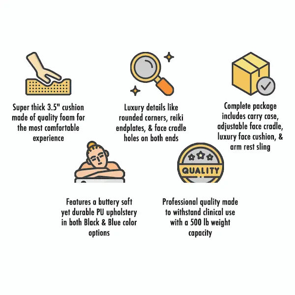- Complete Package – Includes adjustable face cradle, luxury face cushion, armrest sling, and carrying case
