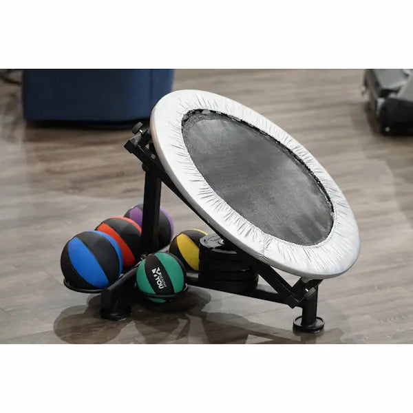 The Healthy You® Medicine Ball Rebounder with Rack is a durable, adjustable rebound trampoline specifically designed to support a wide range of strengthening, coordination, and rehabilitation exercises in physical therapy settings. With 9 angle settings from 40° to 65°, therapists can easily tailor rebound angles to suit patient needs and progressions using the spring-loaded locking knob. The integrated 5-ball rack keeps equipment organized and within reach, while anti-slip adhesive pads and a built-in plate weight stand ensure stability during intense routines. Built to support medicine ball-only use, this space-saving design is ideal for clinics seeking reliable, functional equipment for dynamic therapy protocols.