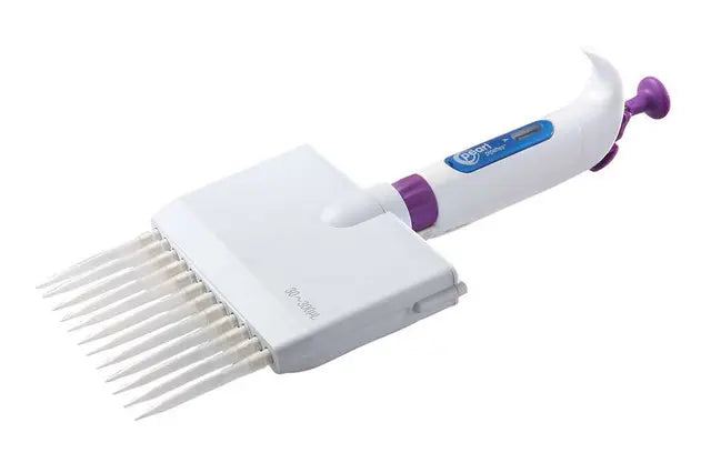 A complete range of twelve channel pipette volumes to cover all your possible needs. The sleek ergonomic design and reduced plunger pressure help reduce the chance of RSI, as the pipettes require 2/3rd the operation pressure of most standard pipettes. Each pipette is tested in accordance with standards and a calibration certificate is supplied. Precision metal components for both shaft and barrel ensure reliable performance and long life. Each unit is color coded and labeled with volume range (both top and side for quick visual confirmation). Order your adjustable volume pipette with Heathrow Scientific today and receive free shipping and fast delivery.