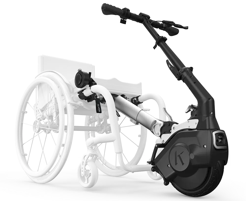 Effortless and Reliable ConnectionTwist connects to all types of manual wheelchairs, both rigid and folding, using the patented Linking System Klaxon®. The innovative, high-quality design of the linking system provides easy front and rear attachment. The audible latch acknowledgement ensures you know when you are ready to go.