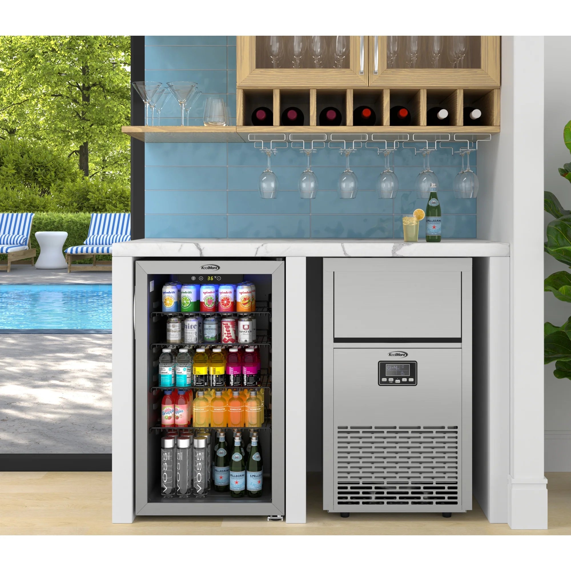 - Automatic Shut-Off and Water Refill: Automatically pauses ice production when the storage bin is full and resumes once the ice is removed. Designed to connect directly to a water supply line for consistent, hassle-free operation.
