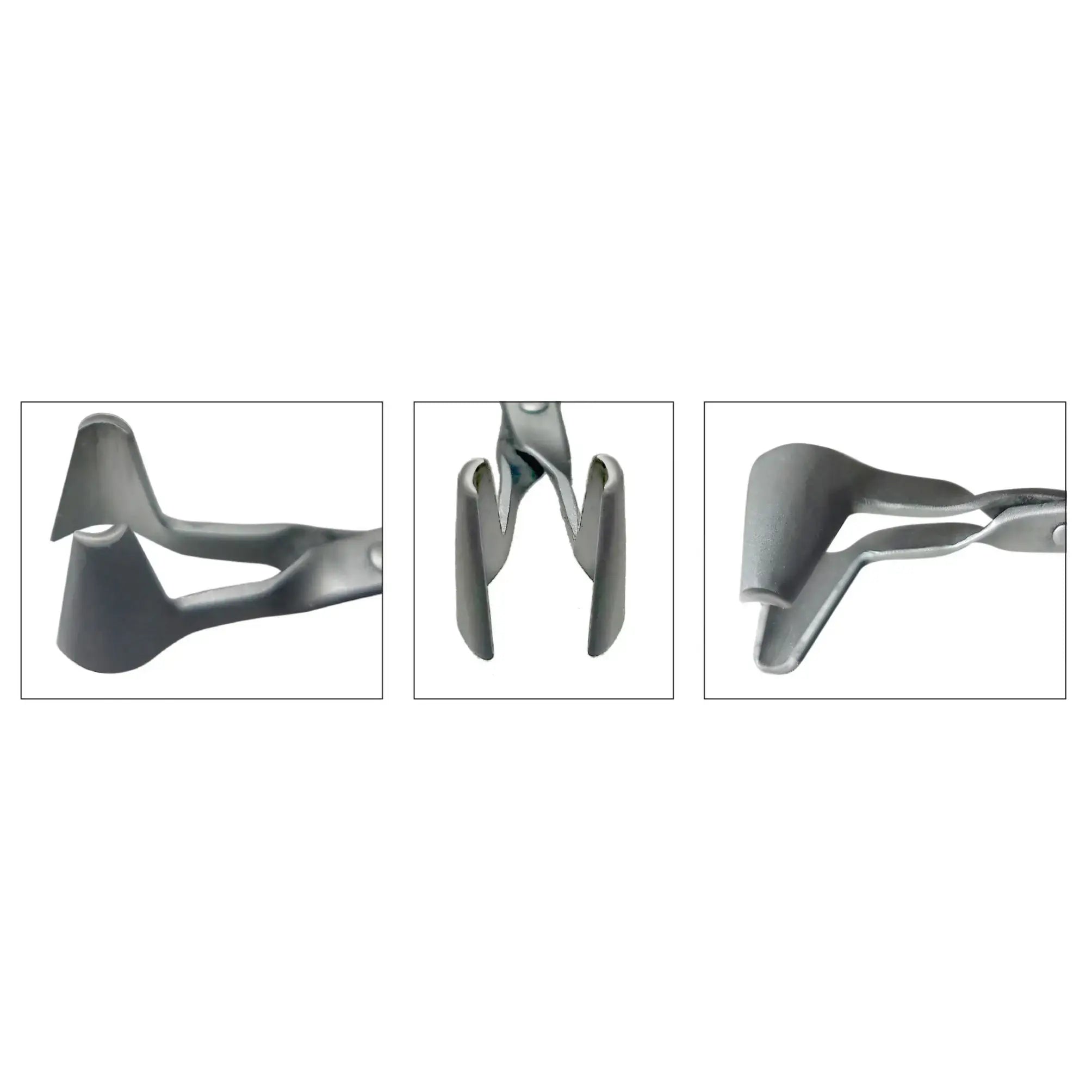 . Laschal Bone Packer Forceps (16.2cm, flat-handle 90°) ensure precise, efficient graft placement around implants. Featuring a versatile half-moon tip, ergonomic balance, and carbon-free surgical metal, they deliver effortless control and predictable surgical outcomes.