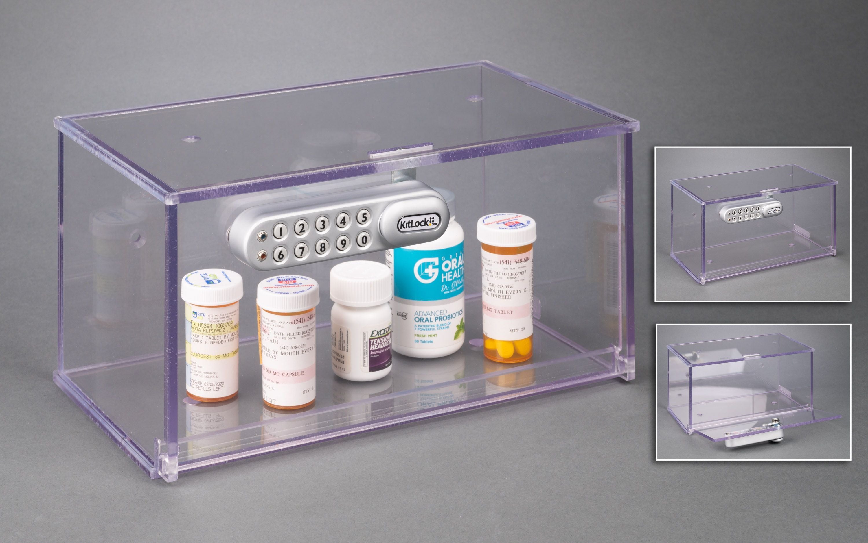 | 8w × 5d × 4t | Locking Medication Box – Smaller Size (8×5×4") | DRUGBX854 |