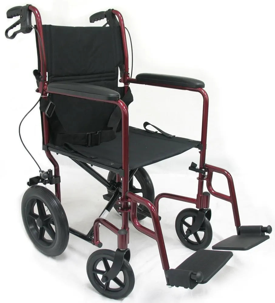 Karman LT-1000HB Ultra-Lightweight 19" Transport Chair with Companion Brakes, Removable Footrests and Under 23 lbs Weight for Easy Maneuverability in Blue or Burgundy