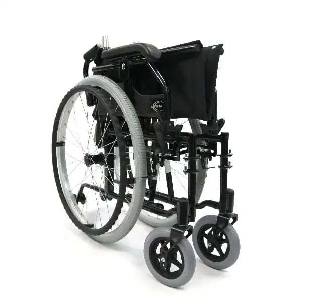 The LT-K5 is one of the newest ultra lightweight wheelchairs to be added to the Karman line with std features such as flip back armrest, height adjustable seat height and armrest, flip back backrest, swing away footrest, and 24" treaded solid flat free rear wheels.
