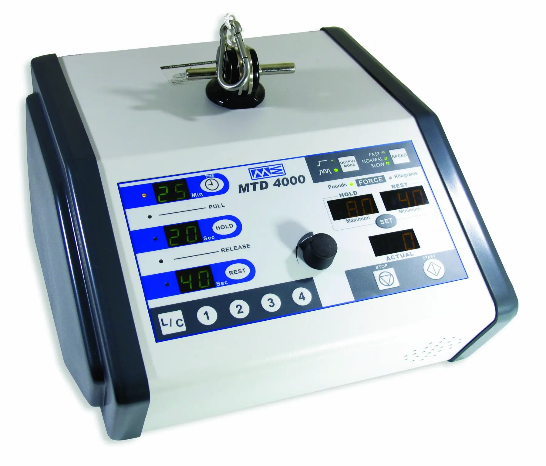 The MTD 4000 (Mettler Traction Decompression) system is an easy to use device that offers static and intermittent traction with user definable hold, rest, and treatment times. It gently pulls the cervical spine or lumbar spine in opposite directions to draw the soft tissue around the cervical or lumbar joints and separate the distance between bone sections of the vertebra.