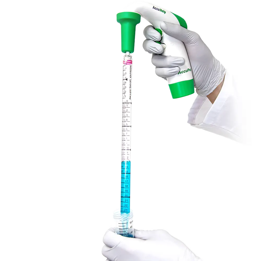 The Oxford Lab Products AccuHelp Pipette Controller is a powerful, lightweight and an ergonomically designed pipette controller that is perfectly suited for use with all commonly used glass or plastic pipettes. The powerful yet quiet pump of the AccuHelp Controller can fill a 25 mL serological pipette in under 4 seconds. The soft grip push buttons create increased ergonomics for the user. The pipette cone is autoclavable and the safety valve and hydrophobic filters provide double protection against fluid penetration. The unit has three different speed modes – high speed, low speed and gravity drain. The pump speed can also be fine-tuned by varying the finger pressure on the operating knobs for better control of speed.