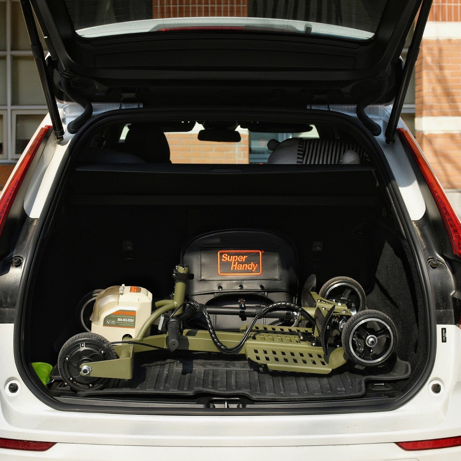 Get moving with the SuperHandy Mobility Scooter Pro - foldable, lightweight, and equipped with a powerful 48V Li-Ion battery. Choose from vibrant Orange & Black or sleek Dark Green & Sand. Perfect for everyday use or adventurous outings, this scooter can support up to 330lbs without weighing you down. | Key Feature 1 value: 330 Lbs | Key Feature Title: Weight Capacity | Key Feature 2 value: 37 Lbs | Key Feature 2 Title: Frame Weight | Key Feature 3 Value: 47 Lbs | Key Feature 3 Title: Assembled Weight | dimensions: 41.7 x 23.6 x 38.2 (L x W x H Inches) | color finish: Orange & Black or Dark Green & Sand | wheel size: 6.75" Inches | motor type: Brushless Electric Motor | bag: Included | battery type: Lithium Ion | brand model compatibility: GUO050 & GUT138 - SuperHandy | frame material: Aluminum | storage type: Nylon Bag | handle material: Rubber | tire tread type: All-Terrain | weight limit: 330Lbs | tire type: Solid | product weight: 47 Lbs
