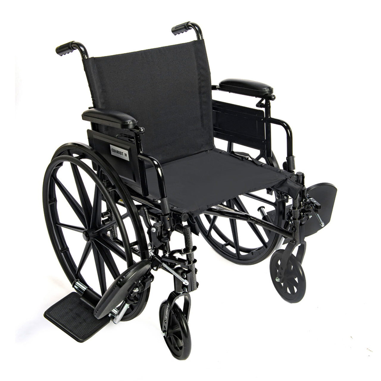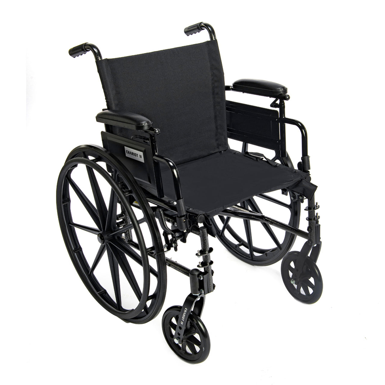 The Chariot IV Wheelchair is ultra-lightweight, yet extremely strong & durable thanks to its aluminum and carbon steel frame. It is specially designed to allow for custom seat backs and accessories and includes an adjustable-depth seat. The rear wheels can be quickly and easily moved between three separate axles to adjust the seat to the ideal height for the user or to angle the seat back. Other comfort adjustments include armrest height, seat back height and the height and angle of the front caster wheels - all allowing you to tailor the Chariot IV to your specific needs.