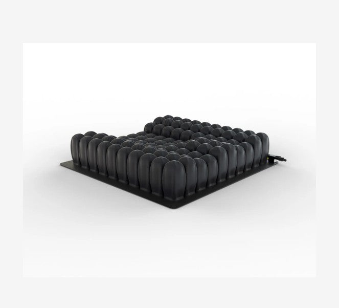 The ENHANCER is an anatomically contoured ROHO air cushion designed for positioning and skin protection. The multiple air cell heights are contained within two independent inflation compartments: one for the ischial well and leg trough, the other for the lateral and medial thigh supports. The ENHANCER also includes the option to offload the ITs.