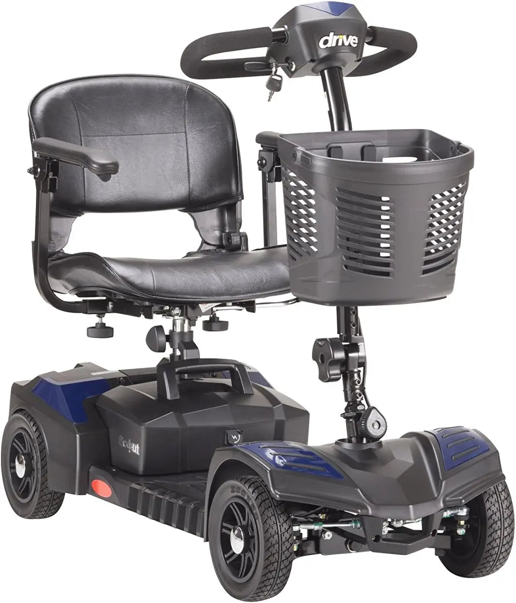 Drive Medical SCOUTLT4 Scout LT 4-Wheel Travel Scooter, 300 lbs Capacity with 9-Mile Range, Disassembles into 4 Pieces, Adjustable Armrests and Interchangeable Color Shrouds