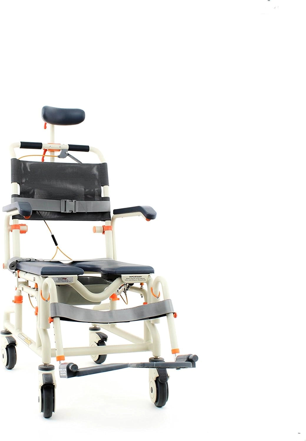 Shower Buddy SB3T Rugged Roll-In Shower Commode Chair with Tilt Mechanism for Safe Toileting & Bathing with Adjustable Neck Rest, Commode System & 5 Locking Casters