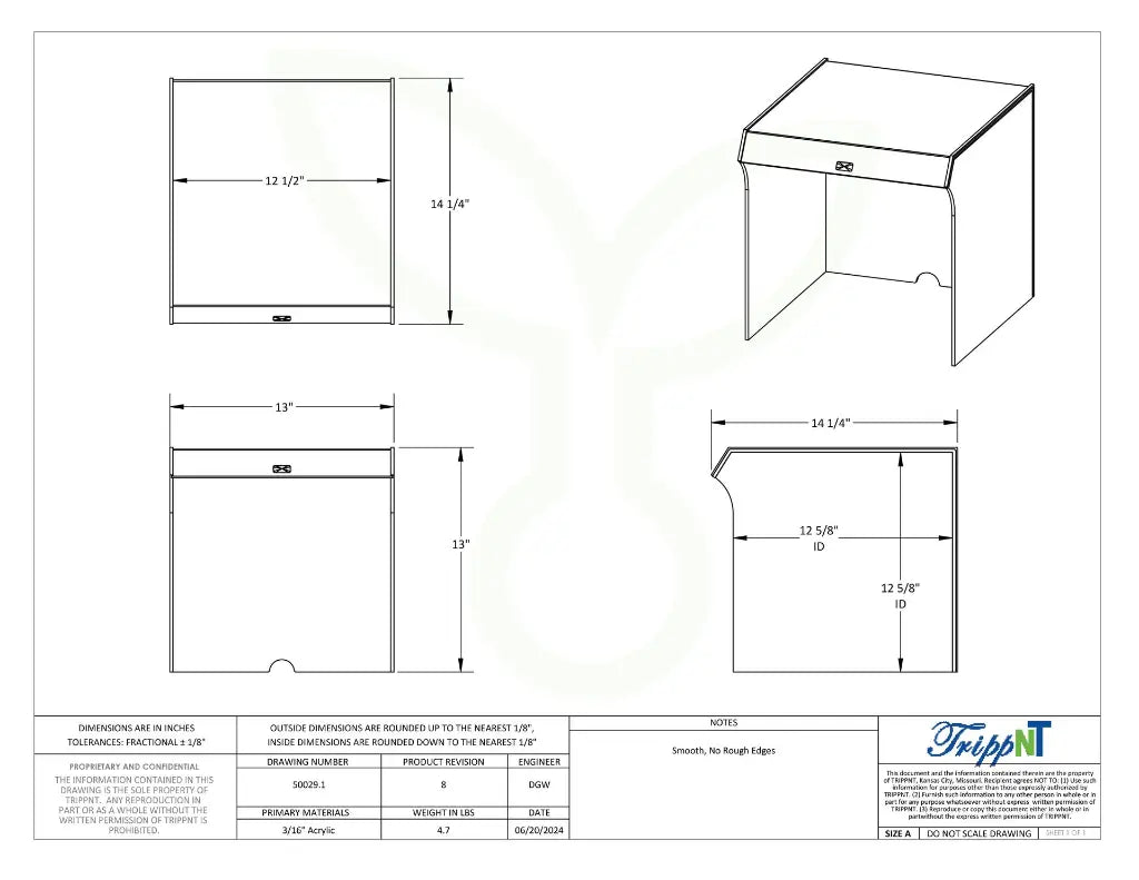 TrippNT’s Draft Shields provide reliable protection for delicate laboratory and clinical equipment by blocking disruptive air drafts. Available in multiple sizes, these clear acrylic shields feature an overhang design and cord pass-through for practical, safe, and efficient use.