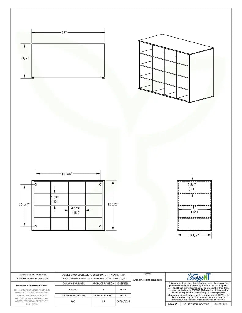 TrippNT’s Safety Glass Holder provides secure and organized storage for up to 16 pairs of safety glasses, preventing scratches and damage when not in use.This Safety Glass Holder is a practical solution for laboratories, clinics, and industrial workplaces. The rectangular bin design with 16 compartments allows multiple glasses to be stored neatly in one place. Constructed from durable white PVC, it can be placed on countertops or conveniently wall-mounted for space-saving organization. Designed to keep safety glasses clean, secure, and easily accessible.