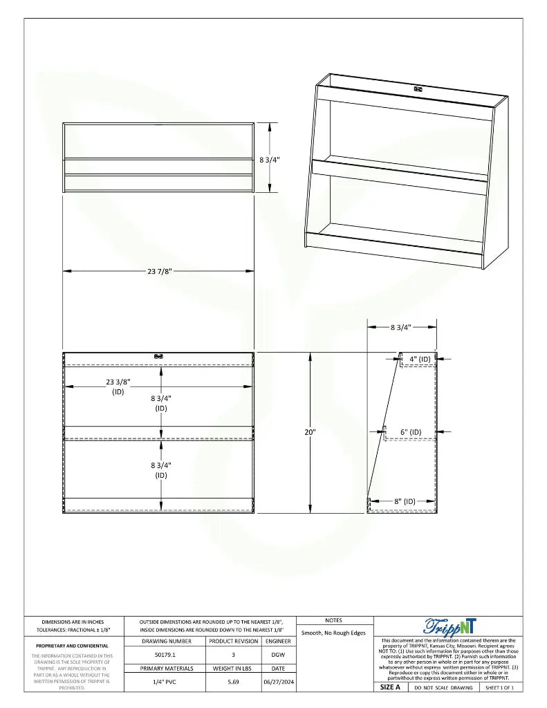 The TrippNT White Angled Triple Safety Shelf is designed to keep supplies organized, accessible, and ready for quick transport. Featuring three staggered shelves, it provides easy access to items while maximizing storage efficiency. Each shelf includes a 1.5-inch safety lip to securely hold items, protect surfaces, and prevent leaks or drips from spreading. Built from durable white PVC, this shelf is long-lasting and easy to clean, making it ideal for laboratory and workplace environments.