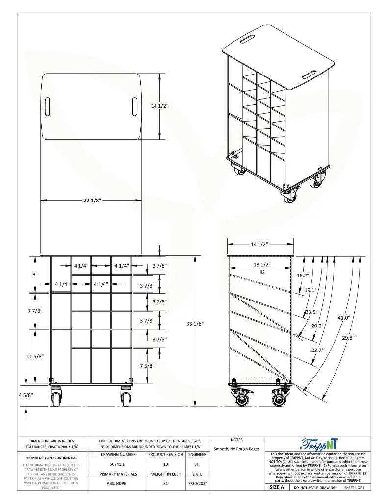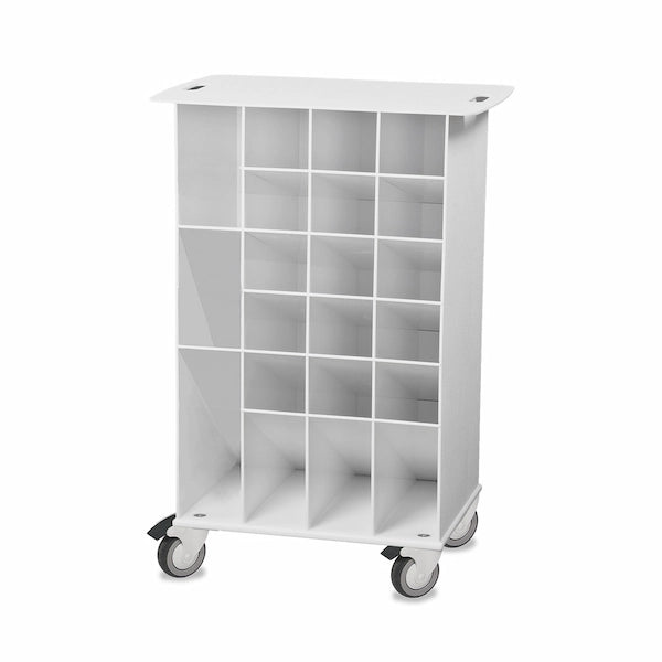 The TrippNT Angled Pipette Cart with White Drawers is designed to store, organize, and transport pipettes and other long laboratory items efficiently. With 17 angled compartments, it provides easy visibility and access to your supplies. Constructed from corrosion-resistant white HDPE and ABS, this fully assembled cart is durable, lightweight, and easy to clean, making it ideal for dynamic laboratory environments.
