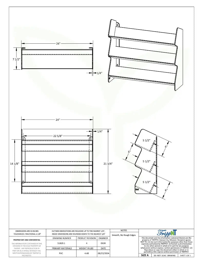 TrippNT’s Suture Shelf is designed to securely hold and organize up to 30 suture boxes, ensuring your supplies are always within easy reach. Featuring 3 angled shelves, this unit keeps boxes stable and accessible at all times. Constructed from durable white PVC, it is easy to clean and built for long-lasting use. The shelf mounts easily to the wall using the integrated keyholes and included hardware, making it a space-saving and practical solution for clinical environments.