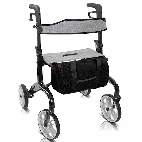 - Uses: A lightweight carbon fiber rollator with a bag, for hassle-free portability and reliable support