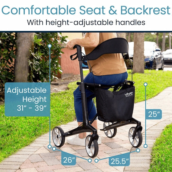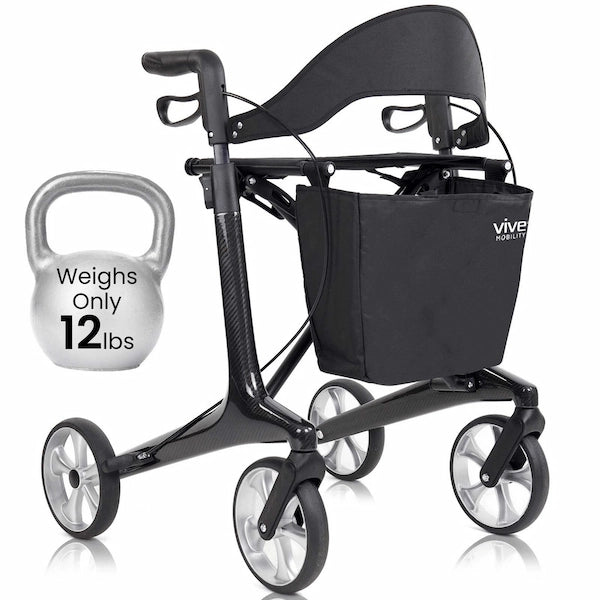 Vive Health MOB1113 Core Carbon Fiber Rollator for Mobility (Weighs Only 12 lbs)