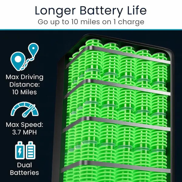 Reliable Battery Power: Drive up to 10 miles on a single charge. This wheelchair delivers consistent power throughout the day, for peace of mind and dependable, uninterrupted mobility.