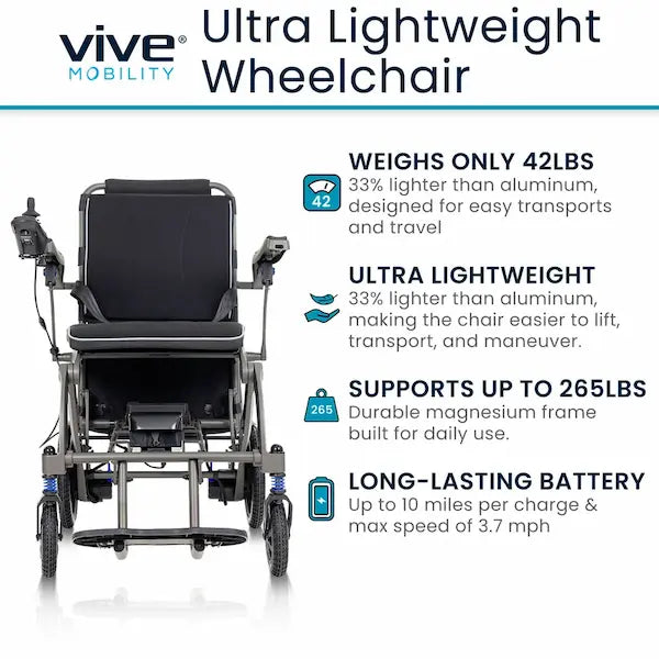 Vive Health MOB1125GRY Air Frame Power Wheelchair - Magnesium Collection