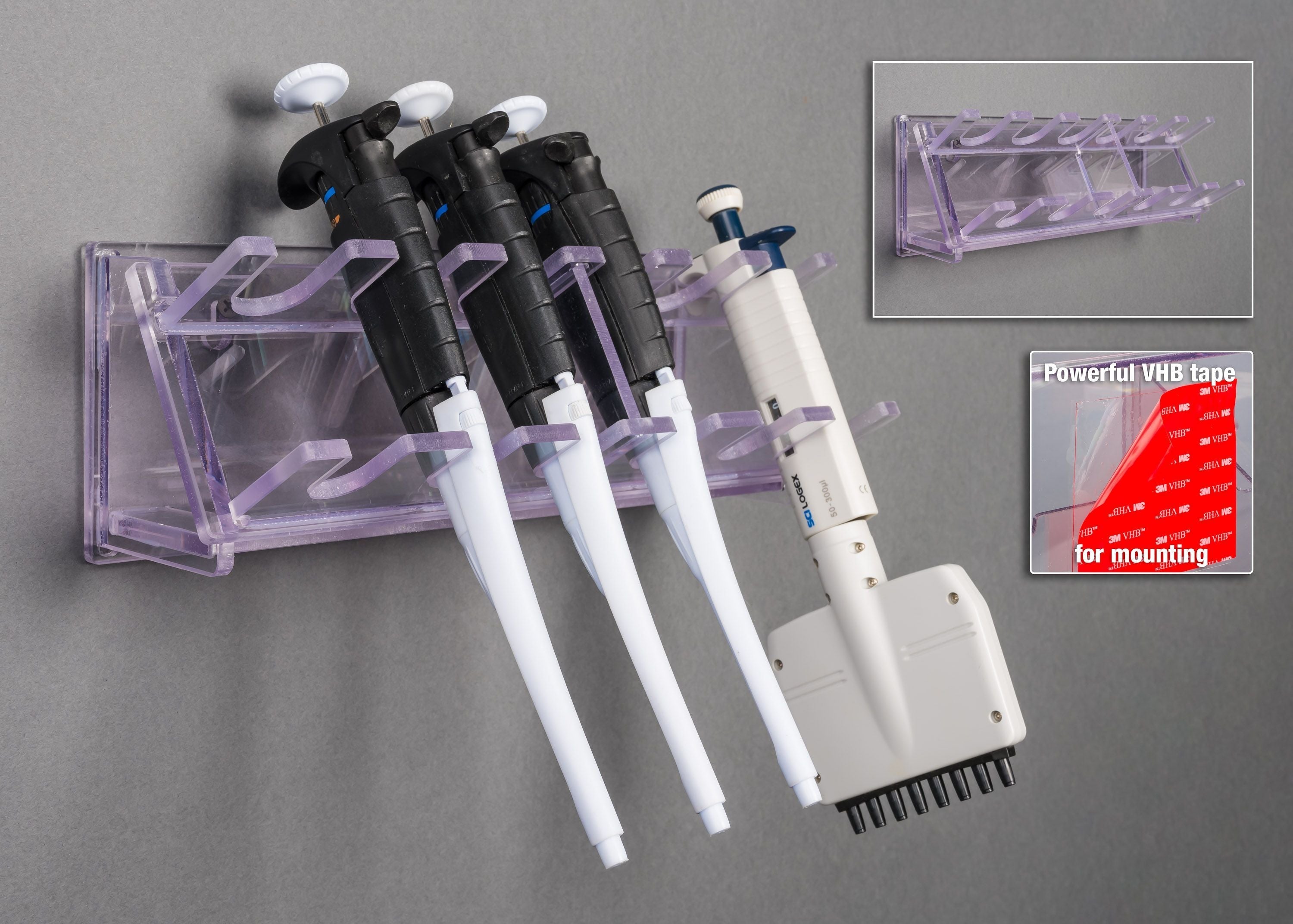 | 5 Pip/1 Multichannel VHB Tape Mount | Wall Hanger – 5 Pip + 1 Multichannel with VHB Tape Mount | PIPRKWL5MUL1-T |
