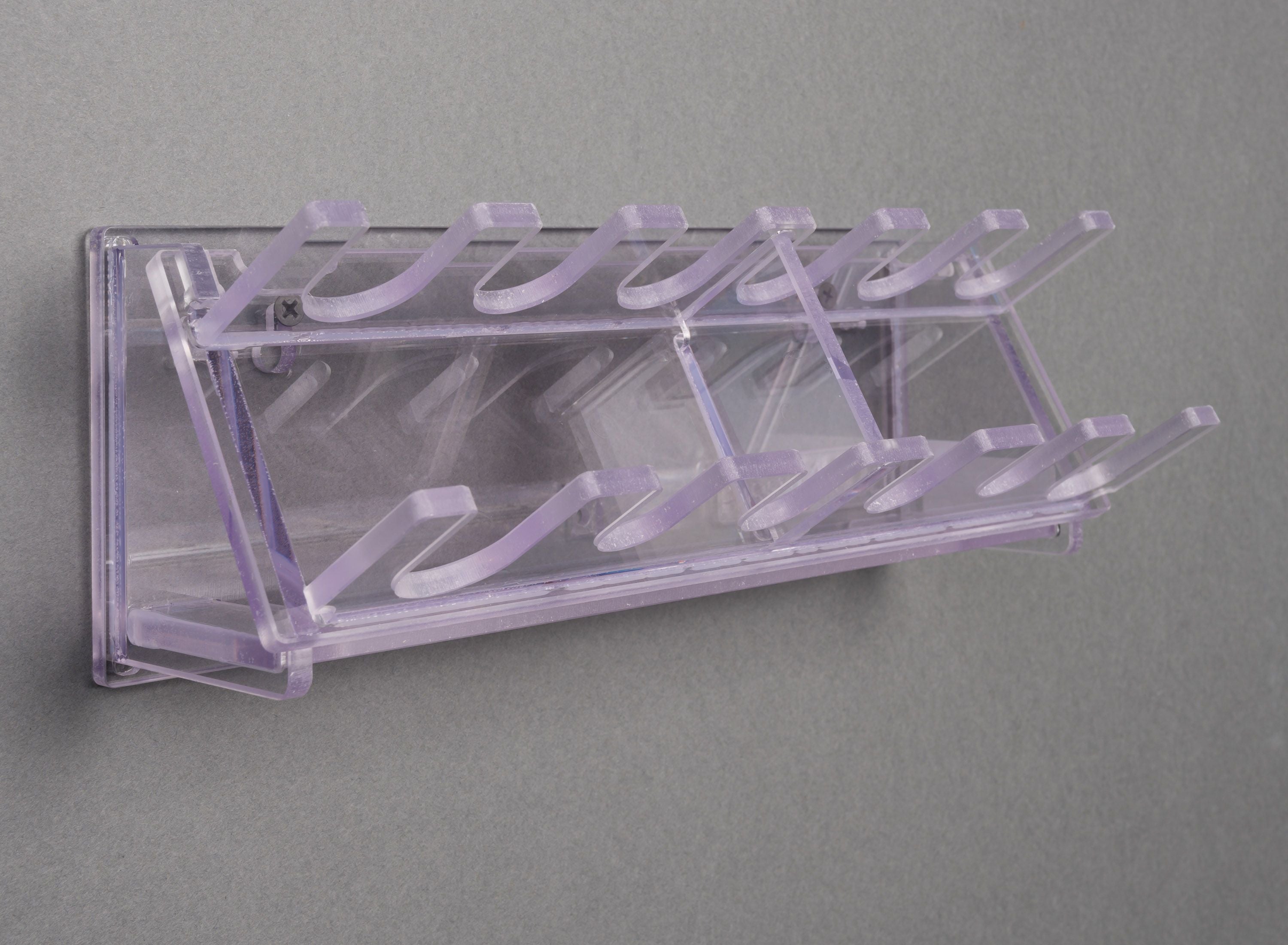 Poltex’s PIPRKWL Pipettor/Multichannel Wall Hanger is a versatile, space-saving wall organizer designed to securely store and display pipettes and multichannel pipettes from most standard brands. Constructed from super-durable, alcohol-resistant PETG with polished edges, this hanger keeps instruments upright, protected, and easily accessible in labs, cleanrooms, hoods, or workstations. Available in two configurations: 4 single-channel pipettes + 2 multichannel positions, or 5 single-channel pipettes + 1 multichannel position. The open-hook design allows quick hanging/removal without tangling. Choose from wall mount (screws/anchors included), powerful magnet mount (for metal surfaces), or VHB tape mount (very high bond tape for permanent adhesion). Consumables (pipettes) not included; see product image for exact dimensions. Made in USA for reliable, hygienic performance that optimizes lab space and improves workflow efficiency.