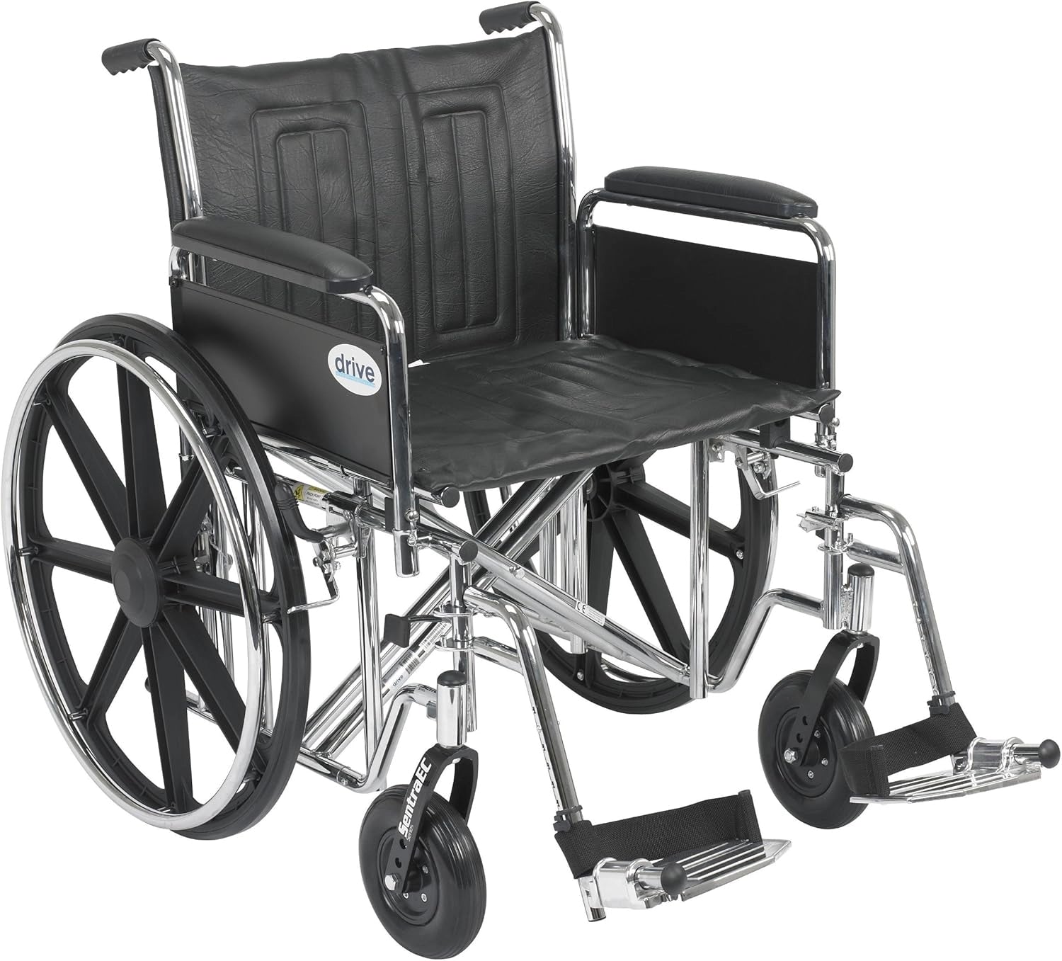 Drive Medical 20959L Sentra EC Reinforced Carbon Steel Wheelchair, 450 lbs Capacity with Removable Full Arms and Swing-Away Footrests for Bariatric Mobility