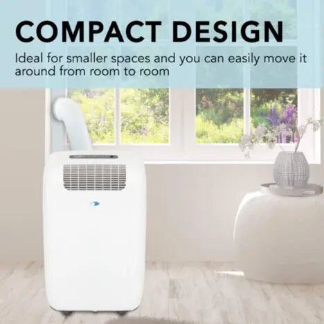 Discover versatile climate control with the Whynter ARC-101CW 10,000 BTU (5,200 BTU SACC) CoolSize Compact Portable Air Conditioner. With its powerful 70 pint dehumidification capacity and Auto Purge function, it cools, dehumidifies, and circulates air in spaces up to 27 square meters. Its compact, rounded design fits seamlessly into any room, while its activated carbon filter improves air quality. Its intuitive controls let you adjust settings quickly and effortlessly. It's ideal for children's rooms, small offices, or areas with limited space. It's portable and environmentally friendly.