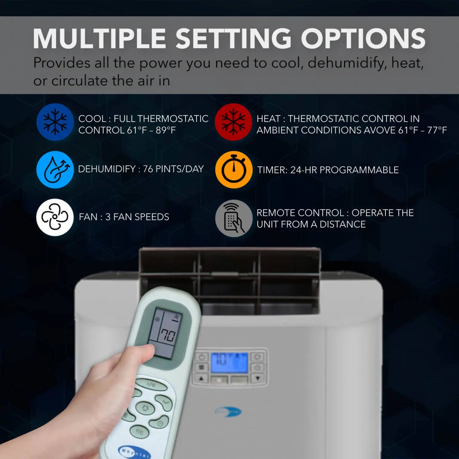 Whynter ARC-122DHP 12,000 BTU (7,000 BTU SACC) Elite Dual Hose Portable Air Conditioner, Heater, Dehumidifier, and Fan with Activated Carbon Filter plus Autopump and Storage bag, up to 400 sq ft in Grey