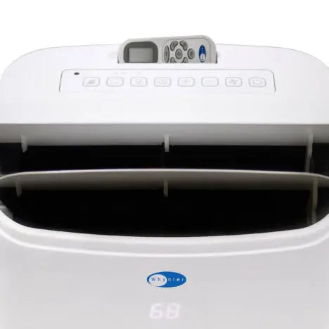 Whynter ARC-147WF 14,000 BTU (10,000 BTU SACC) Dual-Hose Portable Air Conditioner. This powerful unit efficiently cools, dehumidifies, and circulates air in spaces up to 46 square meters. Its HEPA and Activated Carbon filters deliver clean, fresh air. Its remote control ensures hassle-free operation, and its sleek white design complements any room. Its dual-hose system also provides highly efficient cooling for faster temperature regulation.