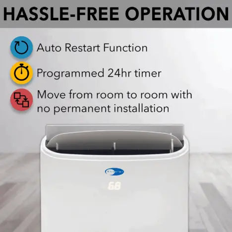 ● Four operational modes: Cool, Dehumidify, Heat, and Fan