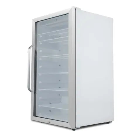 It's an efficient, stylish, and reliable refrigerator. It's a mini refrigerator with a glass door and LED lighting. The CBM-1060XLW is the perfect addition to any home or commercial establishment for chilling and storing your favorite beers and canned drinks. Easily control the interior of your beverage refrigerator with its energy-saving LED soft light and temperature settings using the digital control panel. The transparent, tempered double-glass door showcases your beverage collection, while the 3.6 cubic meter refrigerator is equipped with a superbly illuminated door lighting strip to make it easy to find exactly what you're looking for.