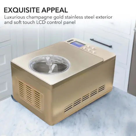 Whynter ICM-220CGY 2 Quart Capacity Automatic Compressor Ice Cream Maker & Yogurt Function with Stainless Steel Bowl in Champagne Gold